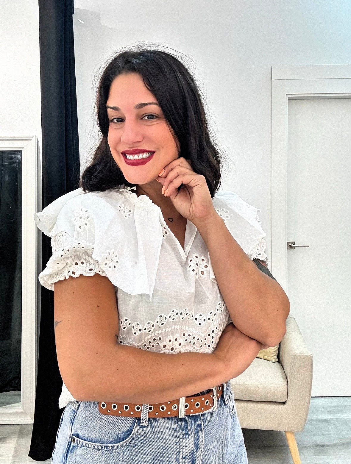 Blusa Carmen es carácter en clave fresca. Troquelada, con juego de texturas y mangas en capa que suman movimiento. Especial, atrevida y con ese punto de energía que no se explica —se lleva. ☀️