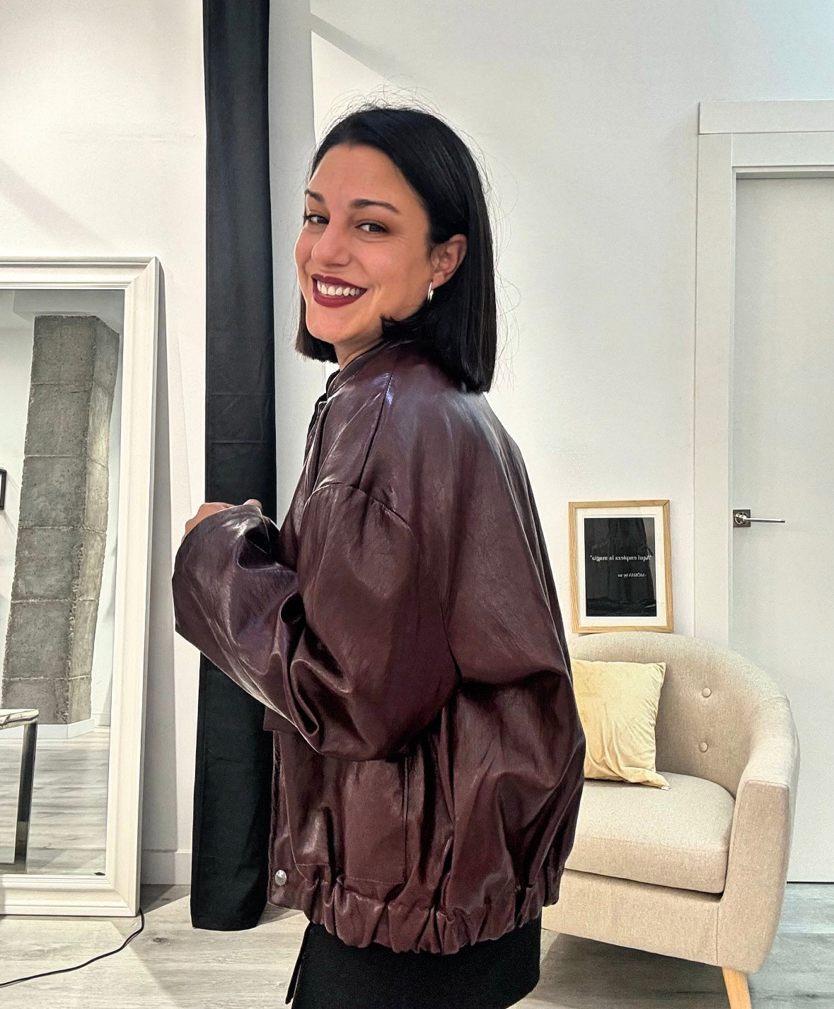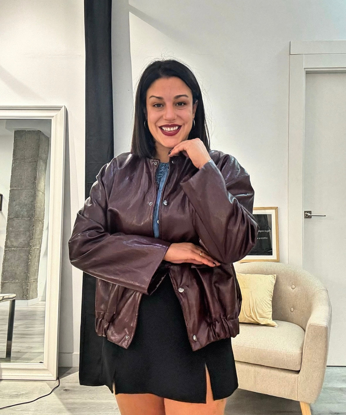 Cazadora oversize en tono burdeos, con mucho estilo y personalidad. Moderna, cómoda y llena de actitud, perfecta para darle rollo a cualquier look de otoño 🖤🔥.
